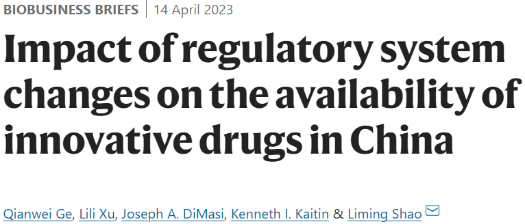 Qianwei Ge et al. Impact of regulatory system changes on the availability of innovative drugs in China. Nature Reviews Drug Discovery (2023).