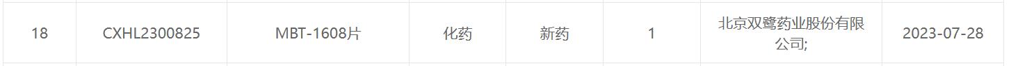 北京双鹭药业MBT-1608片申报临床