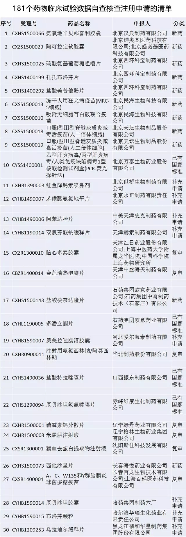 2015年7月22日<关于开展药物临床试验数据自查核查工作的公告>(国家食品药品监督管理总局公告2015年第117号)发布后,国家食品药品监督管理总局(以下简称总局)新收到256个已完成临床试验申报生产或进口的药品注册申请,截止到2016年4月1日,药品注册申请人已主动撤回其中的75个注册申请,总局决定对剩余的181个注册申请逐一进行药物临床试验数据核查。有关事宜公告如下: