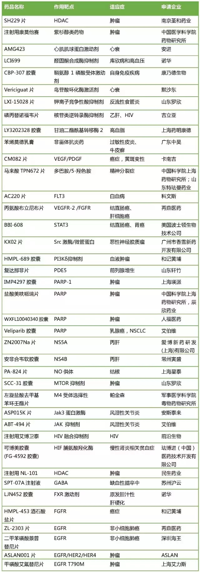 2016年创新药(新1+旧1.1)注册申请共计240个(按受理号计),相比2015年增长19.4%,共涉及89个品种,其中EGFR抑制剂的申报企业数量多于7家,PARP抑制剂的申报企业也在4家以上。