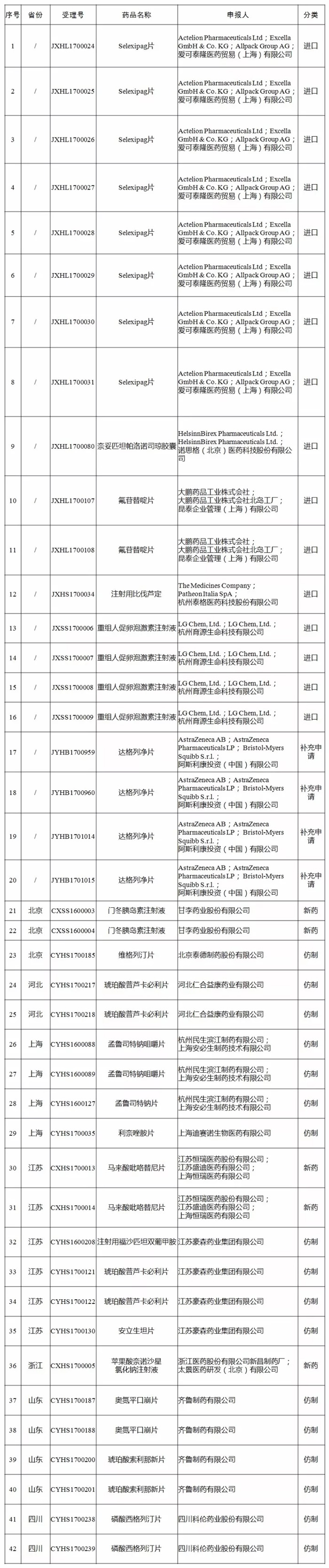 30日,国家食品药品监督管理总局官网发布公告,决定对新收到42个已完成临床试验申报生产或进口的药品注册申请(见附件)进行临床试验数据核查。