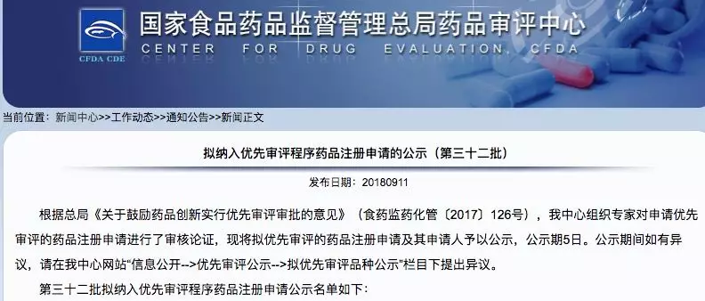 第三十二批拟纳入优先审评程序药品注册申请公示名单如下: